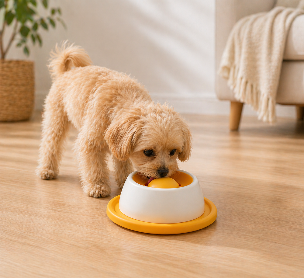Traditional bowls allow dogs to inhale food in seconds, leading to dangerous bloating and indigestion. This feeder forces your pup to nudge and slide for every bite, naturally slowing their pace. It transforms a frantic meal into a healthy, controlled experience that protects their sensitive digestive system.